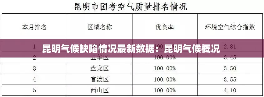 昆明,这座被誉为“春城”的城市,以其四季如春的气候而闻名。然而,近年来,随着全球气候变化的影响,昆明的气候特征也出现了一些缺陷。本文将基于最新数据,对昆明气候的缺陷情况进行详细分析。