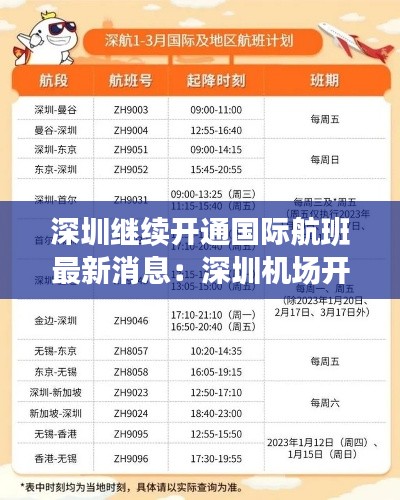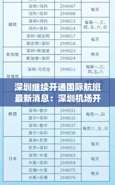 根据最新消息,深圳机场已成功开通多条国际航班,覆盖亚洲、欧洲、非洲等多个国家和地区。以下是部分新增航线的详细信息: