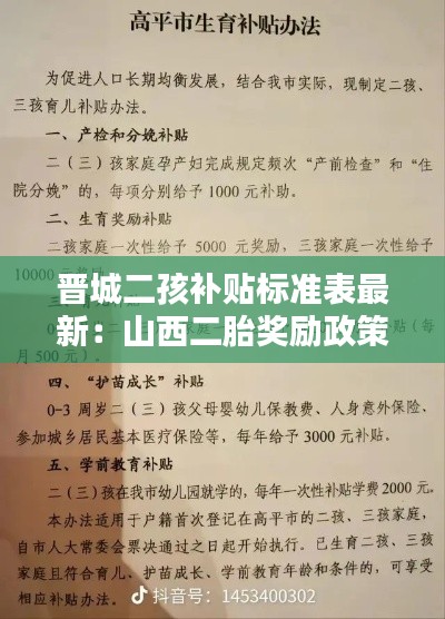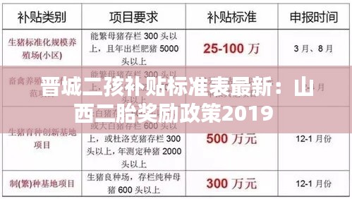 随着我国人口政策的调整,越来越多的家庭开始考虑生育第二个孩子。为了鼓励生育,晋城市政府出台了一系列的二孩补贴政策。本文将为您详细介绍晋城二孩补贴的最新标准表,帮助家长们了解相关政策。