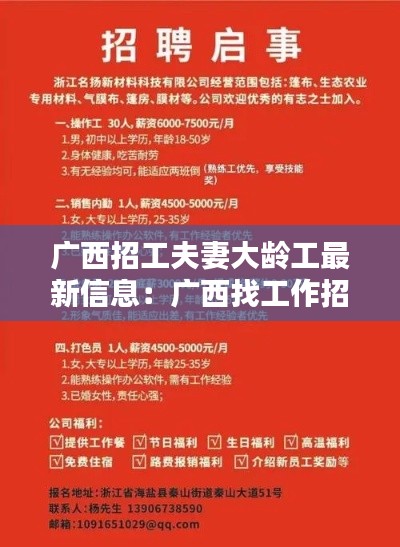 随着我国经济的快速发展,各行各业对劳动力的需求日益增长。广西作为我国西南地区的重要省份,近年来也在积极推进招工工作,以满足各行业的人力资源需求。特别是针对夫妻大龄工的招工工作,广西政府及相关部门给予了高度重视,旨在帮助这部分群体实现就业,改善生活质量。