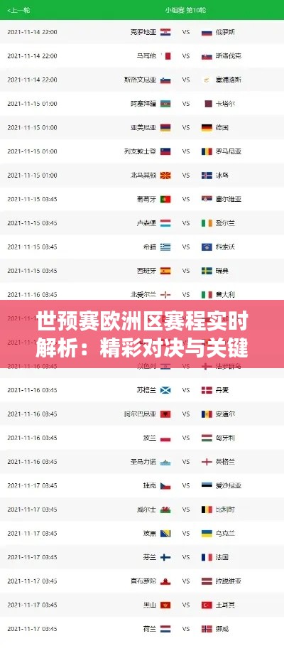 标题:世预赛欧洲区赛程实时解析:精彩对决与关键战役前瞻