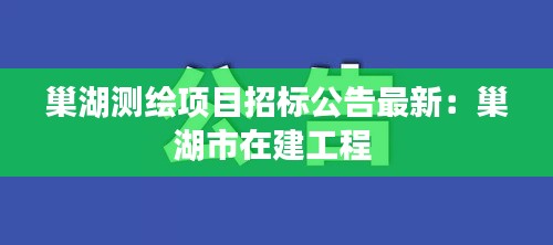 巢湖,作为安徽省内重要的淡水湖,其周边环境与资源的保护与管理一直是政府关注的焦点。为了进一步提升巢湖流域的测绘管理水平,确保流域资源的合理利用和环境保护,巢湖市政府决定对巢湖测绘项目进行公开招标。以下是关于巢湖测绘项目招标的最新公告内容。