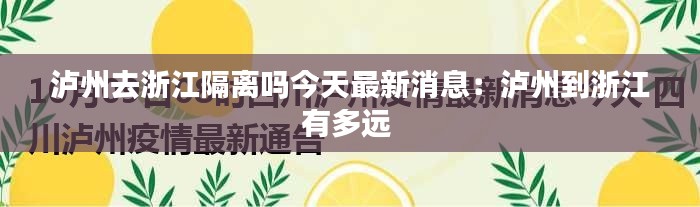 标题:泸州去浙江隔离政策最新动态