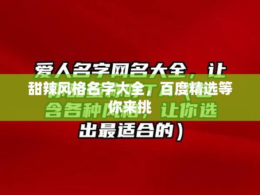 在寻找名字的过程中,有时我们希望能找到一个既甜美又带着一点辣味的名字,就像生活中的酸甜苦辣,这样的名字往往给人留下深刻的印象,就让我们一起在百度的海洋中探寻那些甜辣风格的名字吧。