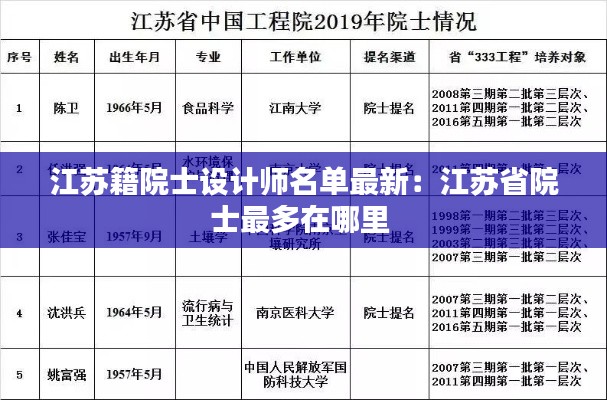 以下是一些江苏籍院士设计师的最新名单,他们不仅在设计领域有着卓越的成就,还在学术研究和人才培养方面有着显著的贡献: