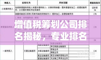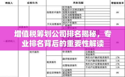 随着经济的发展和企业竞争的加剧,税务筹划已成为企业运营中不可或缺的一环,增值税作为最主要的税种之一,其筹划工作更是受到广泛关注,本文将探讨增值税筹划公司的排名及其对企业的重要性。