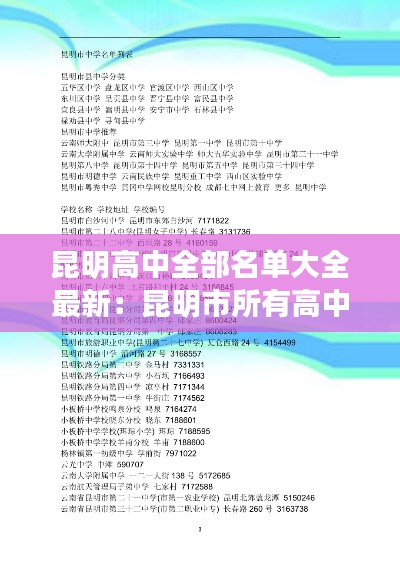 昆明,作为云南省的省会城市,教育质量一直位居全国前列。昆明市的高中有许多历史悠久、师资力量雄厚、教学设施完善的学校。以下将为您详细列出昆明市的全部高中名单及简介。