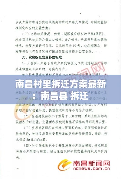 南昌市某村近期迎来了新一轮的拆迁改造工作,这一举措旨在改善村民的生活环境,提升城市整体形象。本文将详细介绍南昌村里的拆迁方案最新动态,包括拆迁范围、补偿标准、搬迁安置等方面。