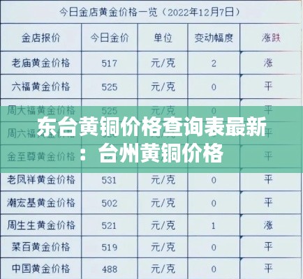 根据最新的市场调研数据,以下是东台黄铜价格走势分析: