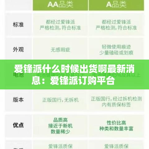 随着科技产品的更新换代,消费者对于新产品的期待与日俱增。爱锋派作为近年来备受关注的科技品牌,其产品的出货动态一直牵动着众多消费者的心。近日,关于爱锋派何时出货的最新消息再次成为热议话题,本文将为您带来最新资讯。