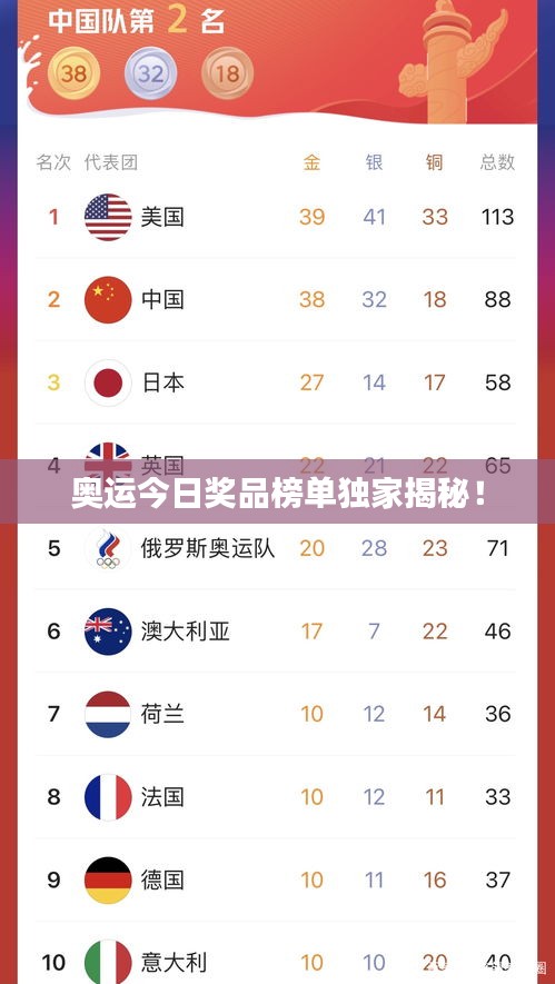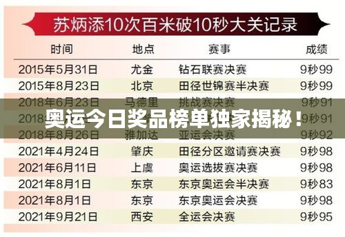 随着奥运会的盛大开幕,全球的体育爱好者都在关注着各项赛事的进展,而在赛场之外,奥运奖品的颁发也是备受瞩目的一大亮点,我们有幸为您带来最新的奥运奖品榜单揭秘,带您一探究竟。