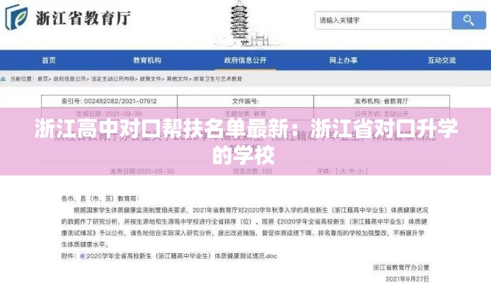 近日,浙江省教育厅正式发布了最新的高中对口帮扶名单。这一名单的公布,旨在进一步促进教育公平,加强薄弱学校的帮扶力度,提高整体教育质量。以下是详细的内容解读。