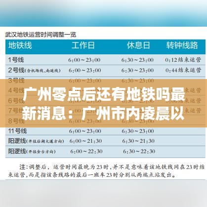 近日,关于广州地铁零点后是否继续运营的问题,官方终于发布了最新的消息。根据广州市交通运输局发布的公告,从即日起,广州地铁将在夜间延长运营时间,以满足市民的出行需求。
