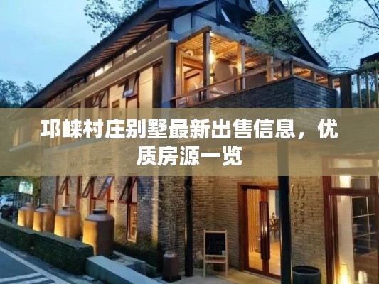随着城市化的不断推进,越来越多的人开始追求生活的品质,远离喧嚣的都市,寻找一处宁静的乡村别墅成为了一种新的生活方式,邛崃市以其优美的自然风光和深厚的文化底蕴吸引了众多购房者的目光,本文将为您介绍邛崃市村庄别墅的最新出售信息,带您领略这片土地上的美好。