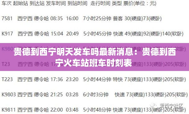 通过本文,您已经了解了贵德到西宁明天发车的最新消息,包括发车时间、票价、乘车地点、注意事项等。希望这些信息能帮助您顺利出行,祝您旅途愉快!