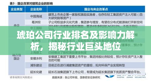 琥珀作为一种珍贵的宝石,近年来在珠宝、工艺品等领域受到越来越多人的喜爱,随着琥珀市场的不断扩大,涉足琥珀行业的公司也日益增多,本文将探讨当前琥珀公司的排名及其行业影响力,分析这些公司在市场中的地位以及未来可能的发展趋势。