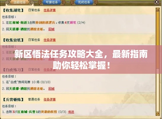 随着游戏版本的更新,新区的悟法任务成为了玩家们争相挑战的重要内容,悟法任务不仅奖励丰厚,更是提升角色实力的重要途径,本文将为大家带来最新的新区悟法任务攻略,帮助大家更好地完成任务,提升游戏体验。