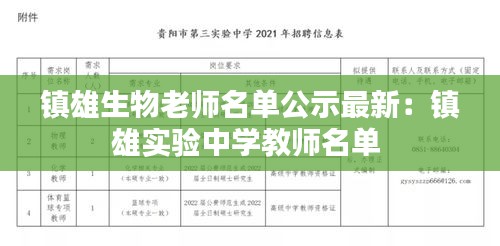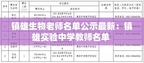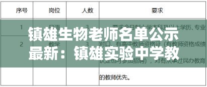 随着教育改革的不断深入,教师队伍建设成为提升教育质量的关键。近日,镇雄县教育局公布了最新的生物老师名单,为广大师生和家长提供了权威的信息。本文将为您详细介绍此次名单公示的相关情况。