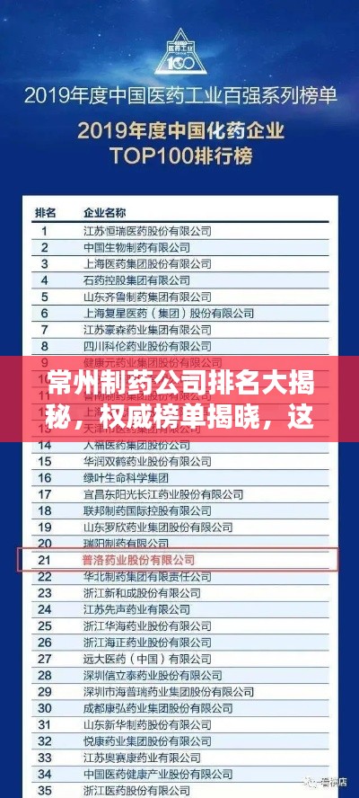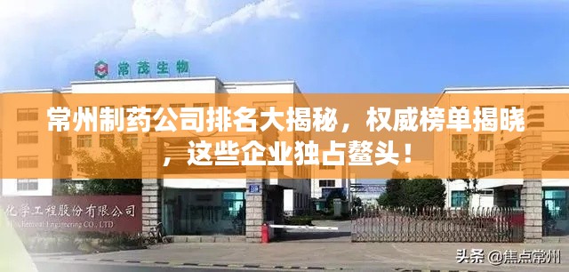 制药行业是关乎国民健康的重要产业之一,随着医药市场的不断发展,各地的制药企业也在逐渐崭露头角,常州,作为江苏省的一个重要城市,其制药行业也日渐壮大,不少制药公司在市场上取得了良好的业绩,本文将探讨常州制药公司的排名及相关情况。