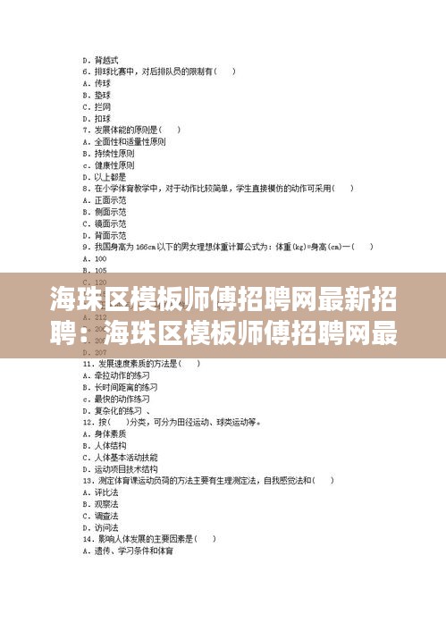 以下是海珠区模板师傅招聘网最新发布的招聘信息,涉及多个岗位及要求: