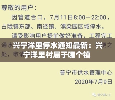 根据兴宁市供水有限公司的最新通知,我们了解到洋里地区将进行一次计划性的停水作业。以下为详细的停水信息,请您提前做好相应准备。