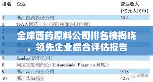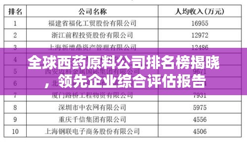 随着全球医药市场的蓬勃发展,西药原料行业也日新月异,竞争愈发激烈,本文将为您呈现西药原料公司的排名榜,带您了解这一行业的领军企业。