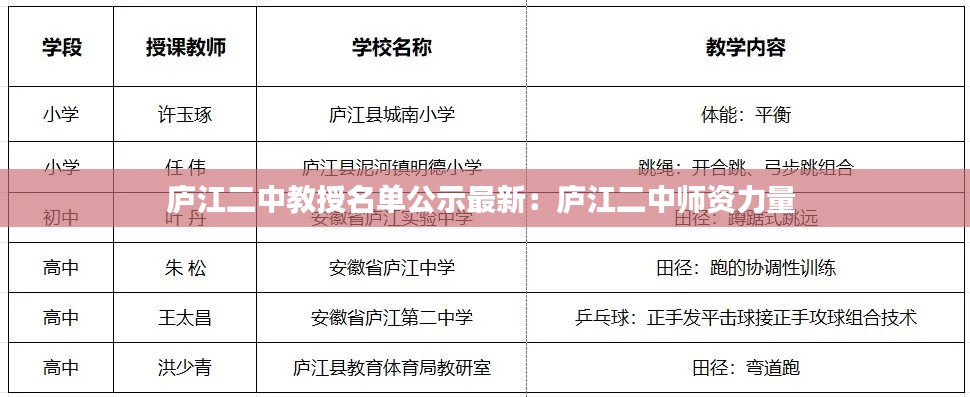 近日,庐江二中官方发布了最新的教授名单公示,为广大师生和家长提供了详尽的教师信息。以下是对此次公示的详细解读。