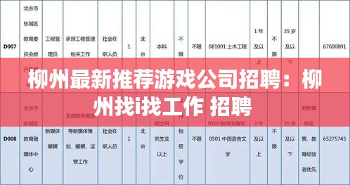 转载请注明来自武汉厨博士餐饮管理有限公司,本文标题:《柳州最新推荐游戏公司招聘:柳州找i找工作 招聘 》