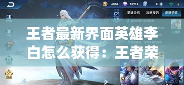 王者荣耀李白最新界面英雄的获取方式多样,玩家可以根据自己的喜好和实际情况选择合适的途径。无论是参与活动、积累碎片还是直接购买,都能让玩家体验到这位诗仙的风采。希望本文能帮助到正在寻找李白英雄的玩家。