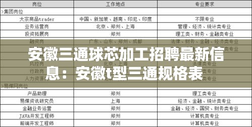 为了满足日益增长的市场需求,安徽三通球芯加工企业正积极寻求优秀人才加入。以下是当前招聘的最新信息,涉及多个岗位,具体如下: