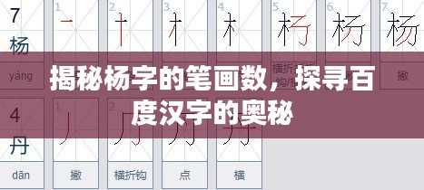 百度,作为全球最大的中文搜索引擎,一直致力于为用户提供高效、准确的信息检索服务,在百度搜索框中输入“百度一下杨有几划”,我们就能找到关于“杨”字的笔画数等相关信息。