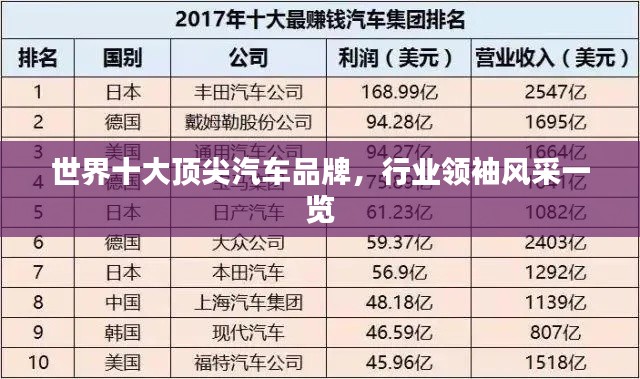 随着科技的飞速发展和全球化的推进,汽车行业已成为当今世界最为重要的产业之一,各大汽车制造商不断推陈出新,竞争日益激烈,在此,我们为您揭晓世界车排名前十名的品牌,这些品牌在汽车技术、品质、创新和市场占有率等方面均表现出色。
