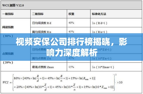 随着数字化时代的来临,视频监控系统在安保领域的应用日益普及,视频安保公司作为专业的服务提供商,其重要性日益凸显,本文将探讨当前视频安保公司的排名及其影响力。