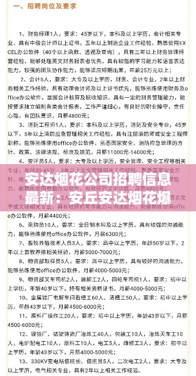 转载请注明来自武汉厨博士餐饮管理有限公司,本文标题:《安达烟花公司招聘信息最新:安丘安达烟花爆竹公司 》