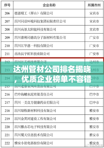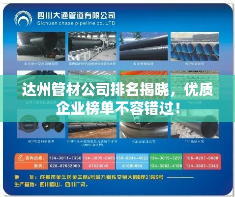 随着达州建筑行业的快速发展,管材市场需求不断增长,越来越多的管材公司涌现出来,本文将介绍达州管材公司的排名,以便消费者更好地了解市场情况,做出明智的选择。