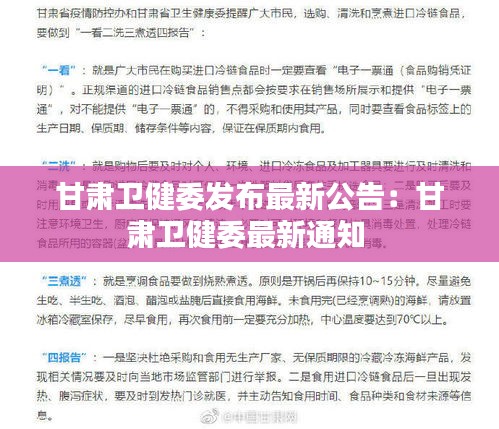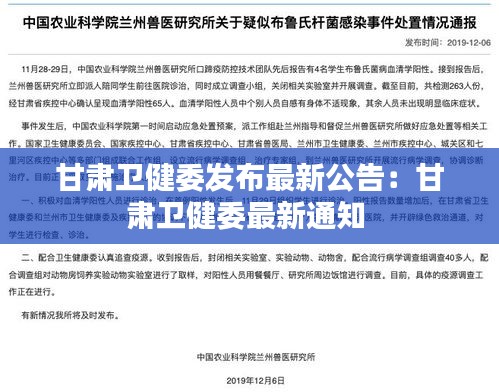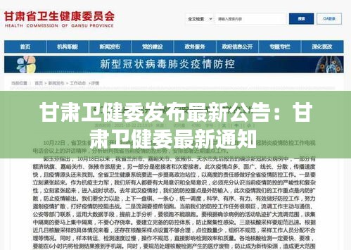 甘肃省卫生健康委员会(以下简称“甘肃卫健委”)近日发布了最新的公告,旨在加强对公共卫生事件的管理,保障人民群众的生命安全和身体健康。以下为公告的主要内容: