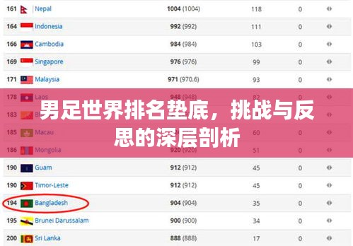男足世界排名是衡量各国足球队在国际舞台上表现的重要指标之一,这一排名基于国际足球联合会(FIFA)的积分系统,涵盖了国际比赛的成绩、表现等多个方面,某些国家的男足队伍在FIFA排名中处于较低位置,甚至垫底,引发了社会各界的关注。