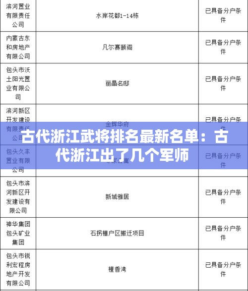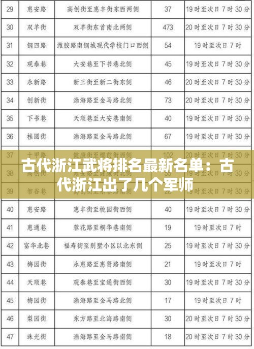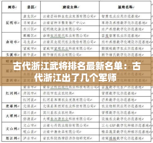 以上是古代浙江武将排名的最新名单,这些英雄人物用自己的勇气和智慧,为中华民族的繁荣昌盛做出了巨大贡献。他们的故事,将永远激励着我们,不忘初心,砥砺前行。
