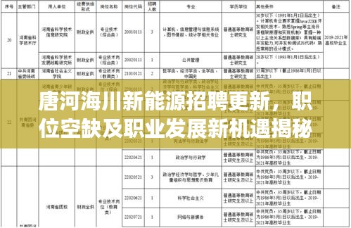 对于正在寻找工作机会的求职者来说,唐河海川新能源的招聘信息无疑是一个重要的机会,希望广大求职者能够抓住这个机会,通过公司的招聘流程,成为唐河海川新能源的一员,共同为新能源事业的发展贡献力量。