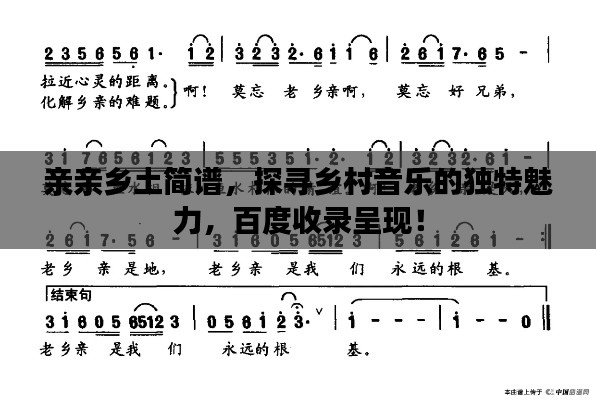 百度一下亲亲乡土简谱,让我们更加深入地了解乡村音乐的文化内涵和音乐魅力,让我们在繁忙的生活中,找到一种宁静和美好,感受乡村音乐的独特魅力。