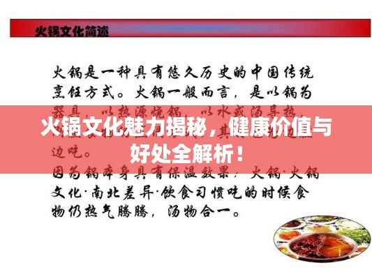 随着天气渐冷,热气腾腾的火锅成为了人们餐桌上的热门选择,火锅不仅是一种美食,更是一种文化,一种凝聚着人们情感的社交活动,吃火锅的好处究竟有哪些呢?让我们一起通过百度搜索,深入了解火锅的魅力与健康价值。