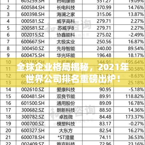 随着全球经济一体化的加速,各大公司的竞争也日益激烈,2021年的世界公司排名揭示了全球顶级企业的格局,这些企业在各自的领域内表现出色,不仅推动了全球经济的发展,也改变了人们的生活方式。