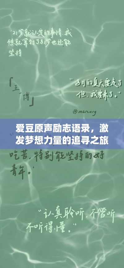 在繁忙的现代社会中,我们时常需要一些励志的话语来鼓舞自己,激发前进的动力,作为公众人物的爱豆们,他们的励志语录往往能够给予我们莫大的鼓舞和力量,本文将围绕“爱豆原声励志语录”这一主题,探讨这些语录背后的深层含义,以及它们如何激励我们追逐梦想。