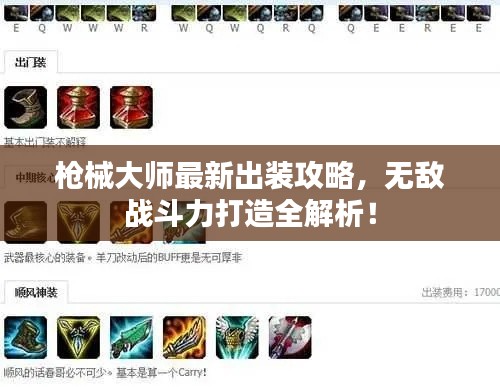 在激烈的游戏战斗中,合理的出装对于角色的战斗力有着至关重要的影响,作为一位枪械大师,如何选择合适的装备,发挥出最大的战斗力,是每位玩家都关注的问题,本文将为大家带来“枪械大师出装最新攻略”,助你轻松打造无敌战斗力。