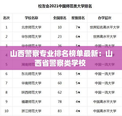 随着社会的进步和公安工作的日益重要,越来越多的考生选择投身警察行业。为了帮助广大考生了解山西警察专业的教学质量与培养效果,我们整理了最新的山西警察专业排名榜单,为考生提供参考。