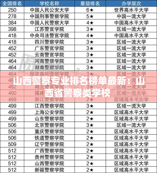 山西警察专业排名榜单概述