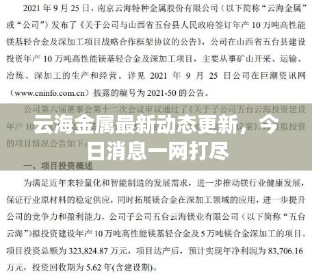随着全球经济的不断发展和科技进步,金属行业一直是重要的经济支柱之一,作为金属行业的重要组成部分,云海金属的发展一直备受关注,本文将围绕“今日云海金属最新消息”这一主题,介绍云海金属的最新动态、市场情况以及未来展望。