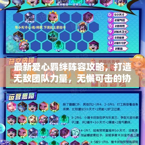在众多的游戏与竞技场合中,如何组建一支强大的团队,形成紧密的羁绊关系,成为取得胜利的关键,本文将围绕“爱心羁绊阵容攻略最新”这一主题,为你揭示如何构建一支无懈可击的阵容,发挥出最大的团队力量。
