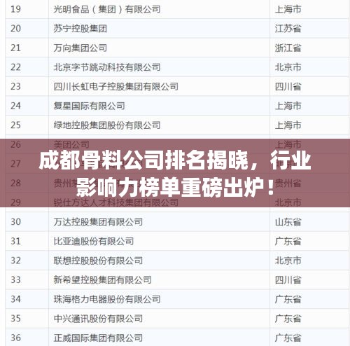 随着西部大开发的深入推进,成都作为西部地区的经济中心,其基础设施建设日新月异,建筑行业发展迅速,作为建筑行业的重要原材料,骨料的需求也日益增长,本文将探讨成都骨料公司的排名及其行业影响力,以揭示这些企业在市场竞争中的地位和影响力。
