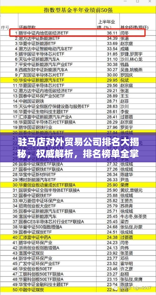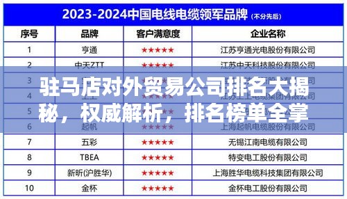 随着全球化的不断发展,对外贸易成为各地经济发展的重要引擎,驻马店作为河南省的一个重要城市,其对外贸易业务也日渐繁荣,本文将深入探讨驻马店对外贸易公司的排名,揭示其背后的实力与潜力。